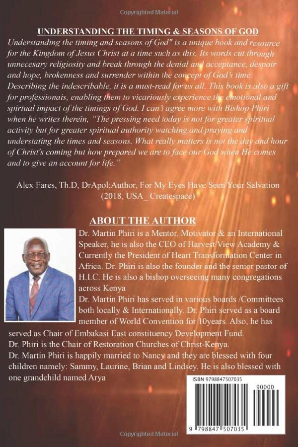 Describing the indescribable is a must-read for us all. This book is also a gift for professionals, enabling them to vicariously experience the emotional and spiritual impact of the timings of God. I can’t agree more with Bishop Phiri when he writes therein, “The pressing need today is not for greater spiritual activity but for greater spiritual authority watching and praying and understating the times and seasons. What really matters is not the day and hour of Christ’s coming but how prepared we are to face our God when He comes and to give an account for life.”
